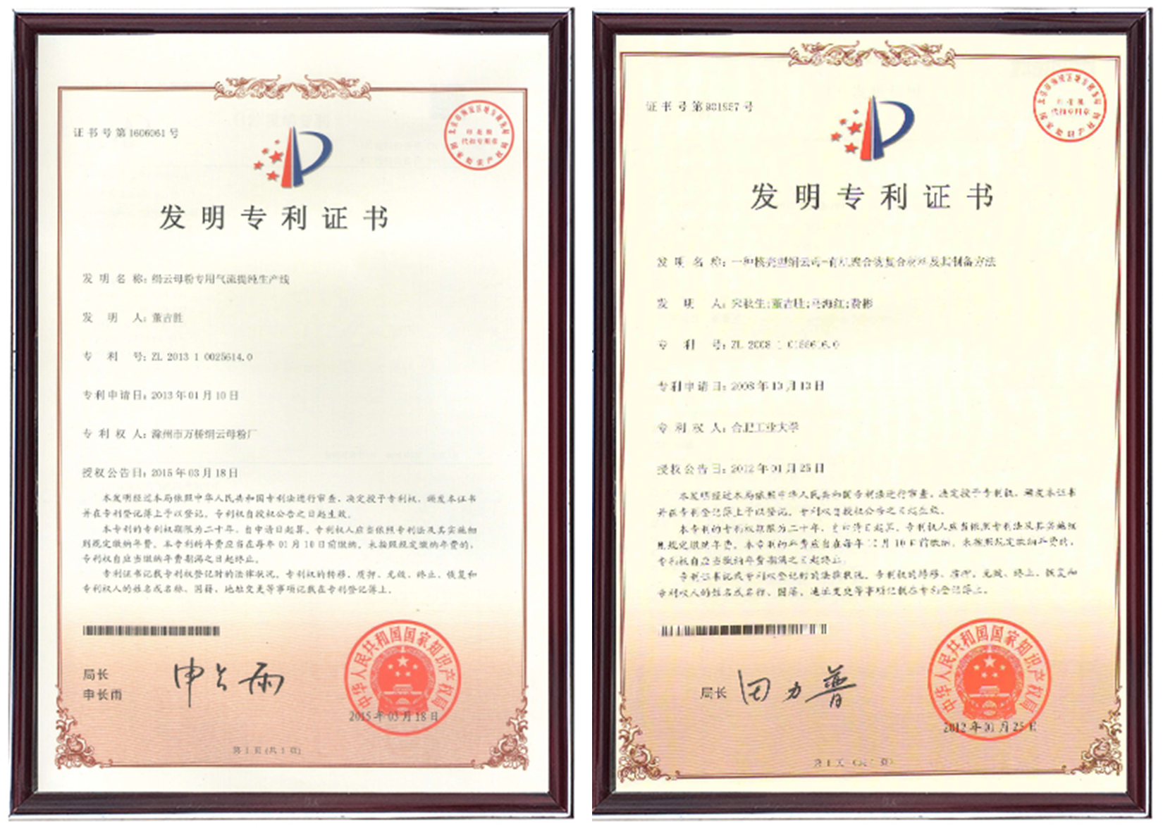 高品質、高產量離不開專業化、高效率的生產,作為國家認定的高新技術企業,萬橋絹云母擁有自己的專利技術,自行研發了氣流提純絹云母生產線,獲得國家專利。