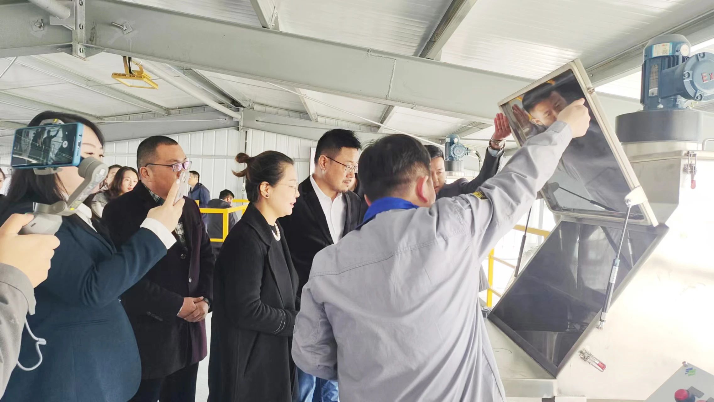 儀式結(jié)束后,與會領(lǐng)導及嘉賓在冠軍集團生產(chǎn)部部長的帶領(lǐng)下參觀了新生產(chǎn)線。據(jù)悉,該條生產(chǎn)線重點解決了傳統(tǒng)涂料生產(chǎn)設備噪聲大、粉塵大等短板,從投料到分散再到砂磨、入罐體,真正實現(xiàn)了全流程靜音無塵生產(chǎn)。同時,該條生產(chǎn)線也是冠軍集團的“脫危戰(zhàn)略”的重大進程,智能化、可視化的生產(chǎn)設備,更直觀、更真實、更精確地掌握各項運行和生產(chǎn)狀況,實現(xiàn)各類過程全程可追溯。該項目的建成及投產(chǎn),將為環(huán)保涂料的規(guī)模化安全穩(wěn)定生產(chǎn)和高質(zhì)量發(fā)展提供強有力的保障。