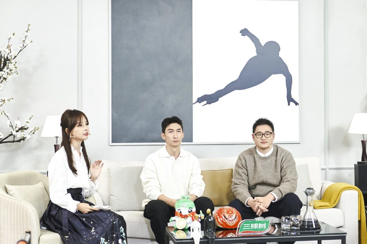 三棵樹集團副總裁洪圣源、總臺記者王冰冰、短道速滑男子500米世界紀錄保持者武大靖,圍繞#把國色搬進王冰冰的家#直播話題,相互討論了概念空間里的設計理念和情感體驗,并對產品進行了多項有趣有料的功能實驗。