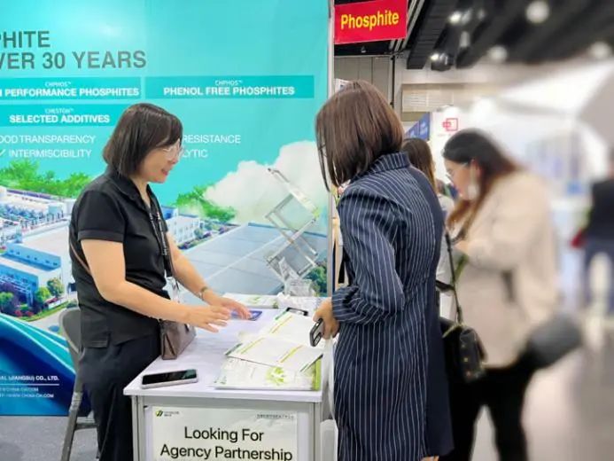 Laura Lang在泰國展會(huì)上為客戶介紹亞磷酸酯