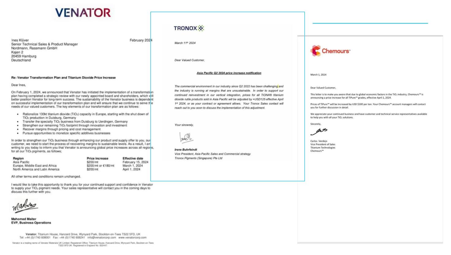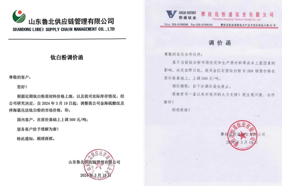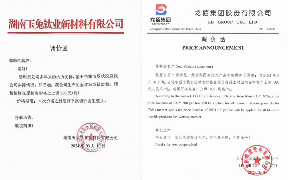 海外鈦白粉“三巨頭”同步漲價