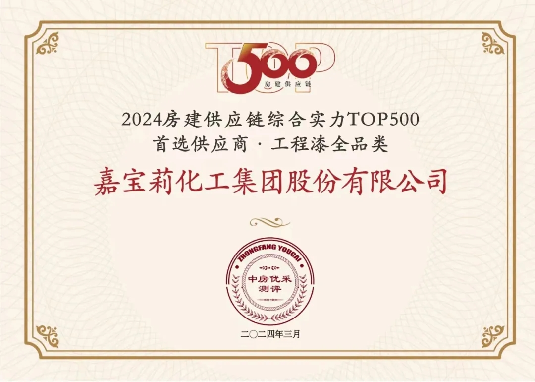 嘉寶莉憑借卓越的綜合實力,連續8年入圍“房建供應鏈綜合實力TOP500”榜單,攬獲7項大獎,并入選中國房地產業協會供應鏈大數據中心“5A供應商”企業庫。