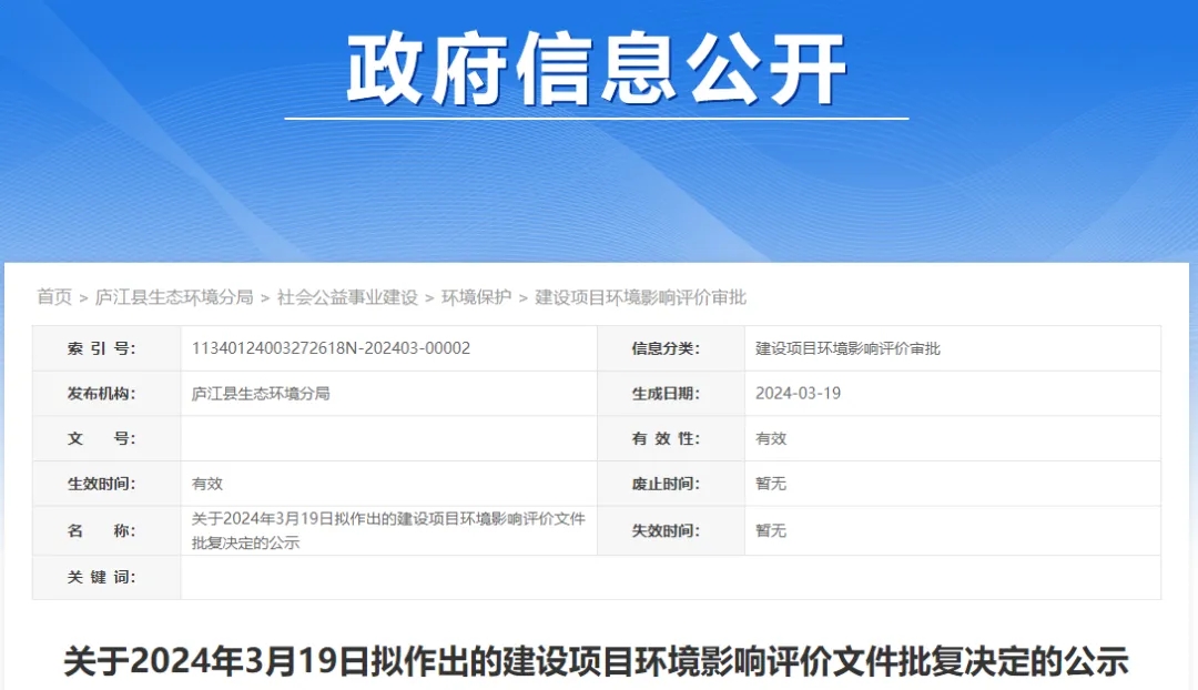 建設地點:安徽省合肥市廬江縣合廬產(chǎn)業(yè)新城郭河鎮(zhèn)科創(chuàng)路以東、智造路以北