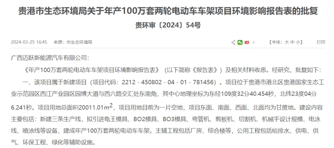 《年產(chǎn)100萬套兩輪電動車車架項目環(huán)境影響報告表》(以下簡稱《報告表》)及相關(guān)材料收悉。經(jīng)研究,批復(fù)如下: