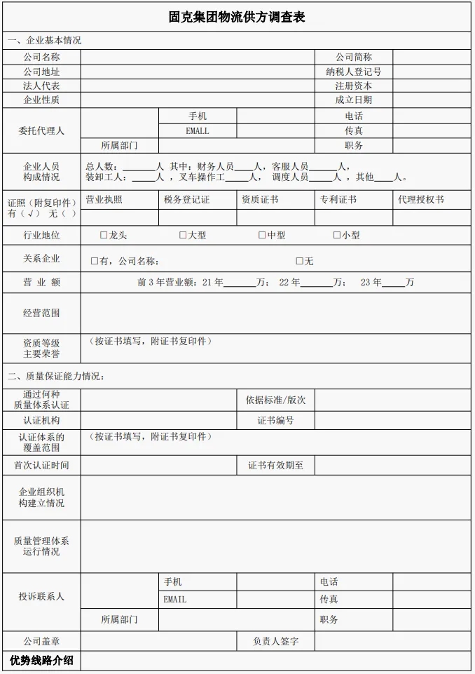 3.資質(zhì)等級(jí)為4A級(jí)以上物流,有通過(guò)ISO9001質(zhì)量管理體系認(rèn)證;