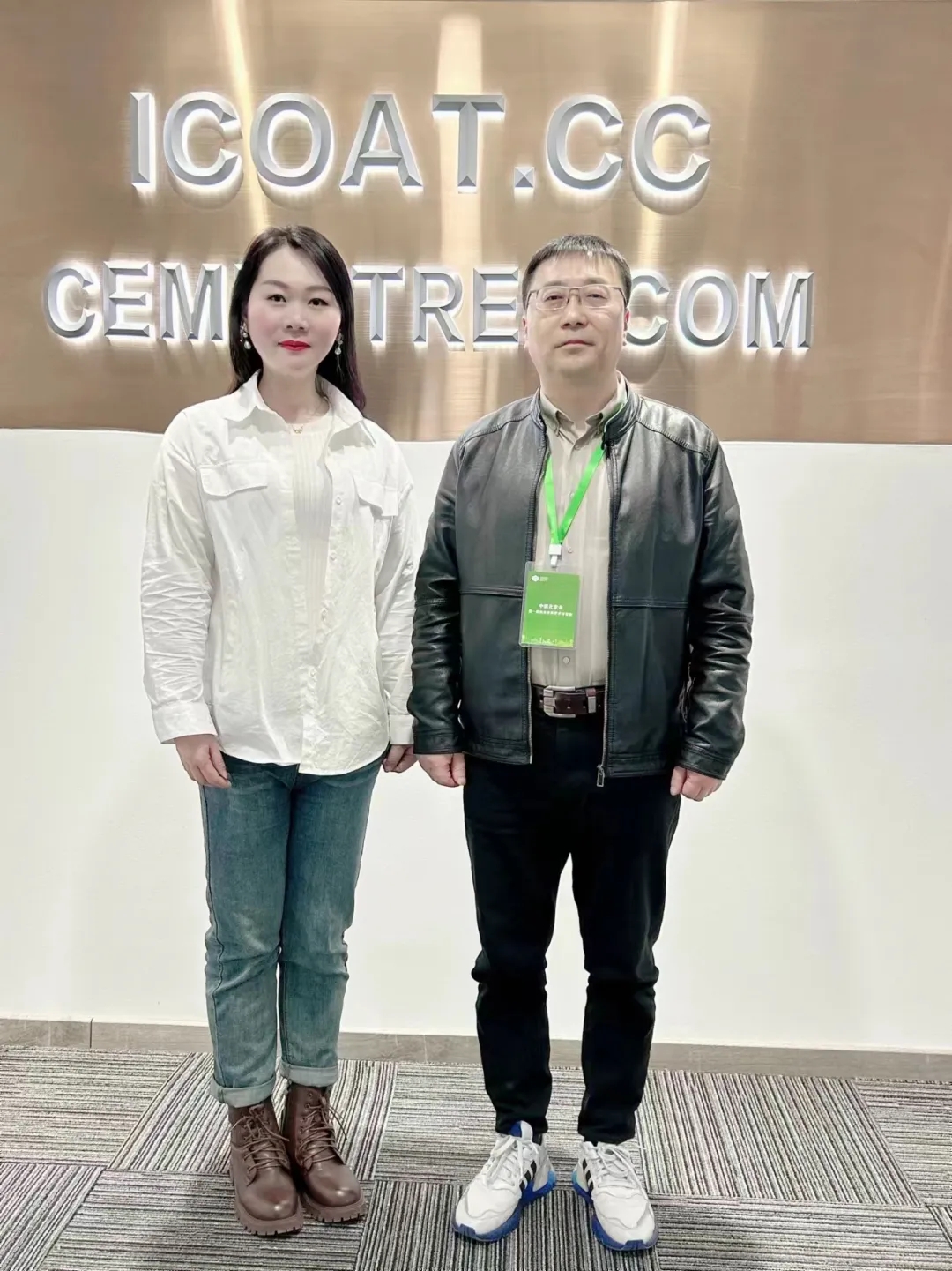 儒佳集團(tuán)董事長(zhǎng)張建國(右)到訪并與涂料采購網(wǎng)江雪(左)合影留念