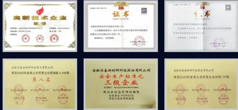 此外,恒泰新科榮獲安徽省“A級(jí)納稅信用等級(jí)單位”、“安徽名牌”、安徽省“著名商標(biāo)”、黃山市銀行信貸誠(chéng)信企業(yè)、市第一屆“誠(chéng)信示范企業(yè)”等榮譽(yù)稱號(hào)。2018年,恒泰新科被列入“安徽省重大新興產(chǎn)業(yè)工程承擔(dān)單位”。這些榮譽(yù)不僅是對(duì)恒泰新科的肯定,更是對(duì)其持續(xù)創(chuàng)新和卓越品質(zhì)的認(rèn)可。