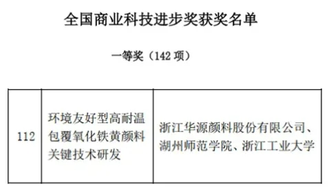 隨著社會的發展,越來越多的企業明白,要想立足并有所發展,必須注重創新研發,堅定地走科技發展新道路。從粗獷型一路走向精細化的涂料產業更是如此,要想打破同質化的惡性競爭,就必須有所突破,才能順利破局。在同質化嚴重的市場競爭中,浙江華源顏料股份有限公司(以下簡稱“華源顏料”)憑借卓越的研發能力,堅定地走上了科技創新的道路,其《環境友好型高耐溫包覆氧化鐵黃顏料關鍵技術研發》榮獲2023年度全國商業科技進步一等獎。
