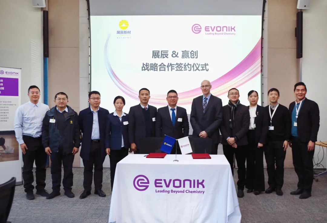 贏創(chuàng)是全球領(lǐng)先的特種化學(xué)品公司,總部位于德國,業(yè)務(wù)遍及全球100多個國家和地區(qū),以“超越化學(xué)邊界,引領(lǐng)美好未來”為企業(yè)使命,為客戶提供創(chuàng)新、高盈利性、可持續(xù)的解決方案。展辰的企業(yè)愿景是“科技改變生活,做涂料行業(yè)的引領(lǐng)者”,致力于為客戶提供全方位的環(huán)保涂裝解決方案。雙方都有為人類提供美好生活的初心,在企業(yè)文化理念層面,贏創(chuàng)與展辰不謀而合。
