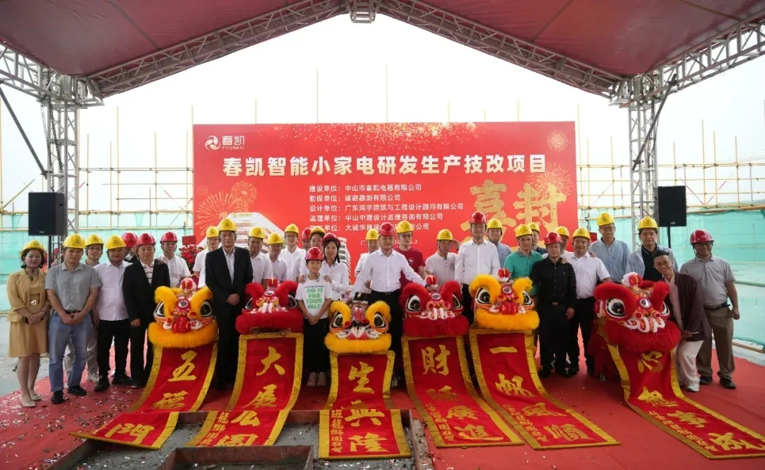 近日,春凱智能小家電研發生產技改項目舉行喜封金頂典禮。黃圃鎮領導梁泳輝、李振、黃炳潮以及項目方春凱電器董事長、麥泳,中山市茂南商會,相關負責人,各界嘉賓約100多人出席儀式典禮,共同見證令人激動的時刻。
