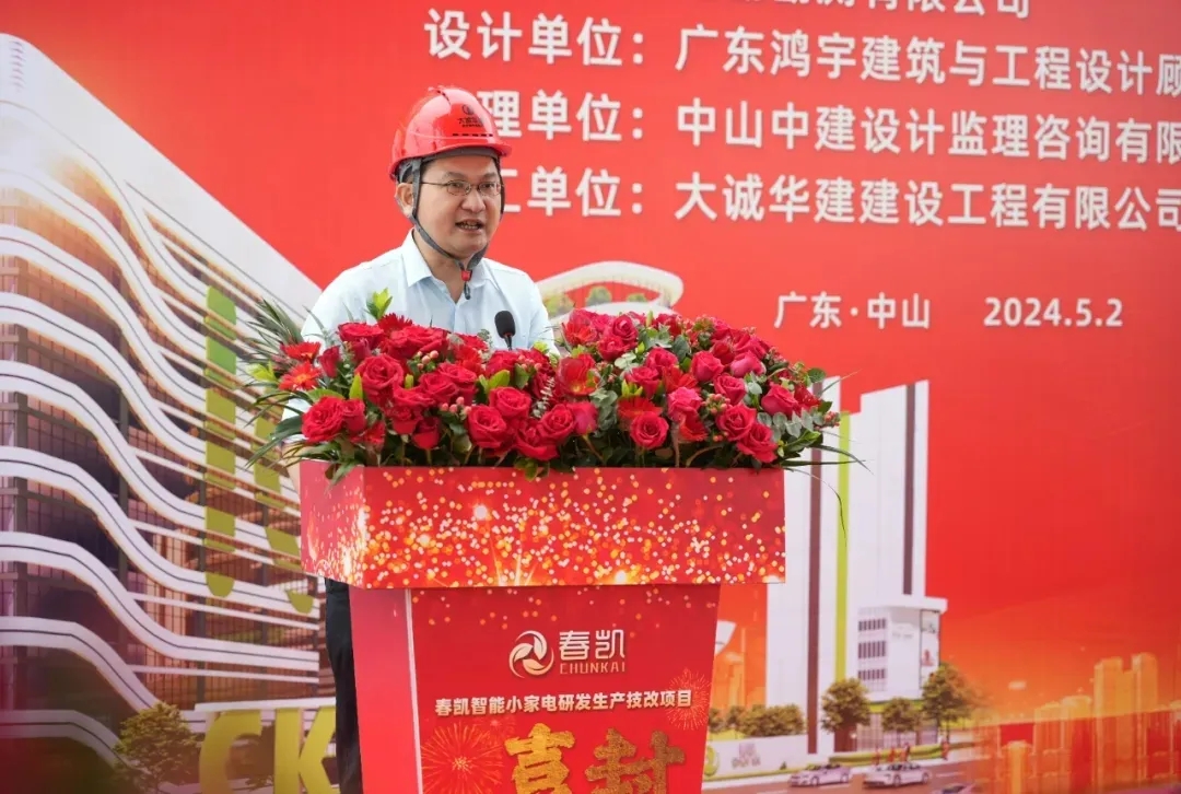 中山市春凱電器有限公司董事長麥泳表示,自項目啟動以來,黃圃鎮黨委、政府對項目建設的支持力度非常大,從“拿地即動工”之后對項目的跟蹤服務也非常到位,才讓項目如此快實現封頂。春凱智能小家電研發生產技改項目9萬平方米建設工程全面封頂,這標志著該項目建設工程取得了重要的階段性勝利,為保證后續施工的順利進行奠定了堅實的基礎。