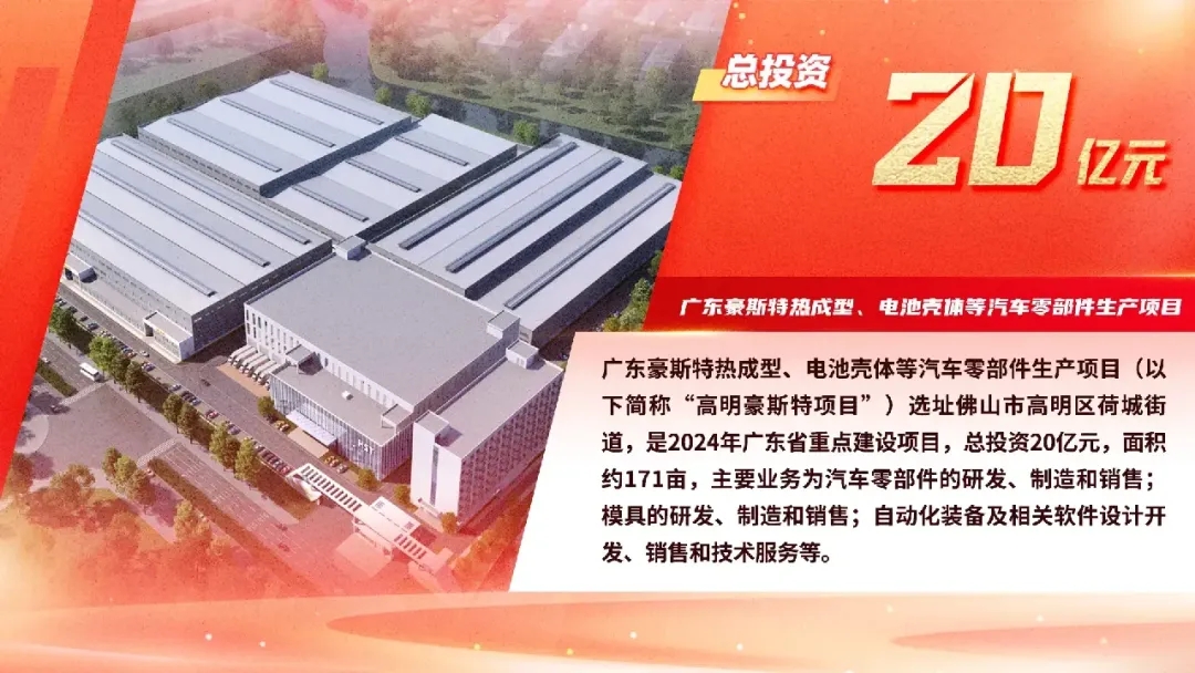 作為2024年廣東省重點(diǎn)建設(shè)項目之一,高明豪斯特項目將吸引和帶動一批產(chǎn)業(yè)鏈上下游企業(yè)集聚,推動汽車全產(chǎn)業(yè)鏈協(xié)同發(fā)展,帶動新型儲能、高端裝備制造等戰(zhàn)略性新興產(chǎn)業(yè)加速聚集,協(xié)同促進(jìn)高明經(jīng)濟(jì)高質(zhì)量發(fā)展。