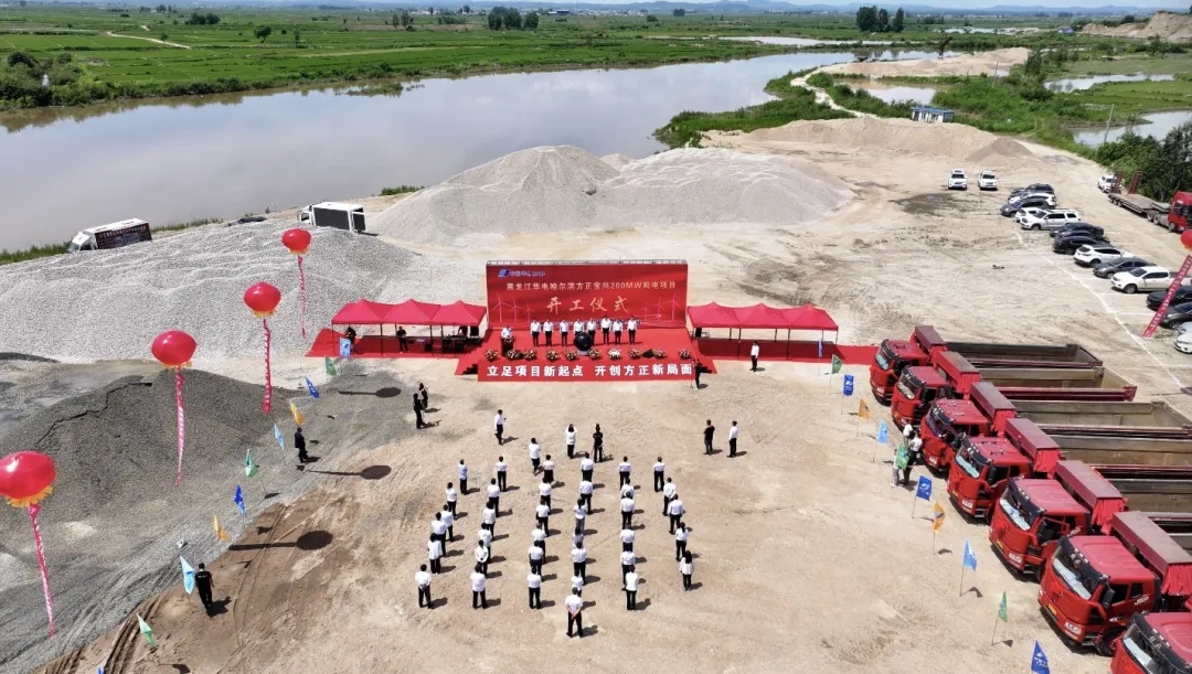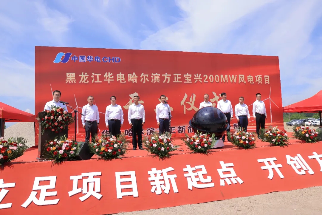 儀式上,中國華電集團有限公司黑龍江分公司黨委書記、董事長郎國民、方正縣委書記鄭偉共同啟動華電方正200兆瓦風電項目。