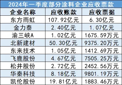 而2024年一季度的情況顯然更為嚴(yán)峻,十幾家涂料上市公司的應(yīng)收票款合計(jì)305億,其中應(yīng)收賬款超過300億,與去年一整年的情況來比,即將達(dá)到持平狀態(tài)。