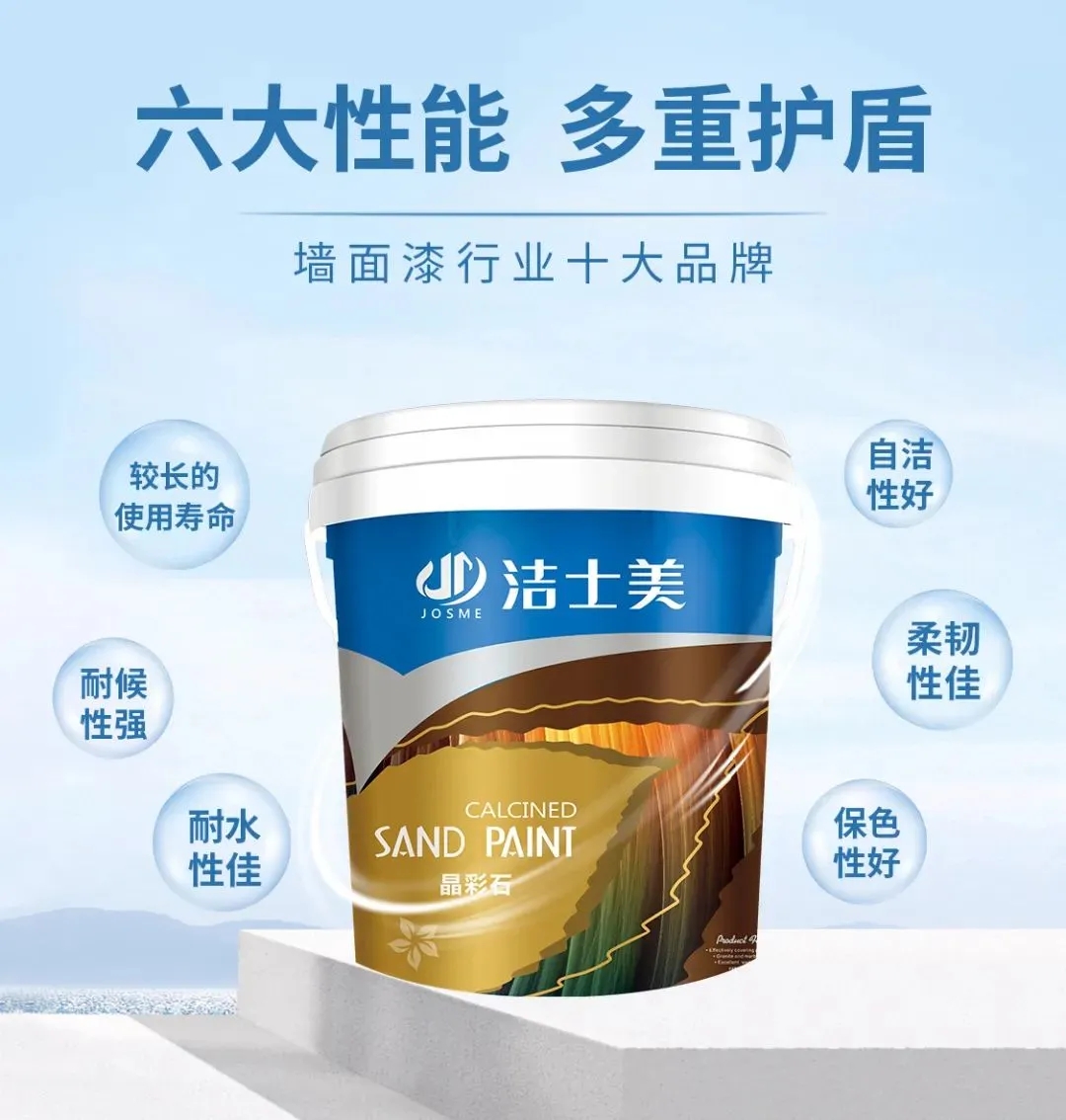 高性能乳液:配合高性能乳液,使得潔士美晶彩石的使用壽命更長久。