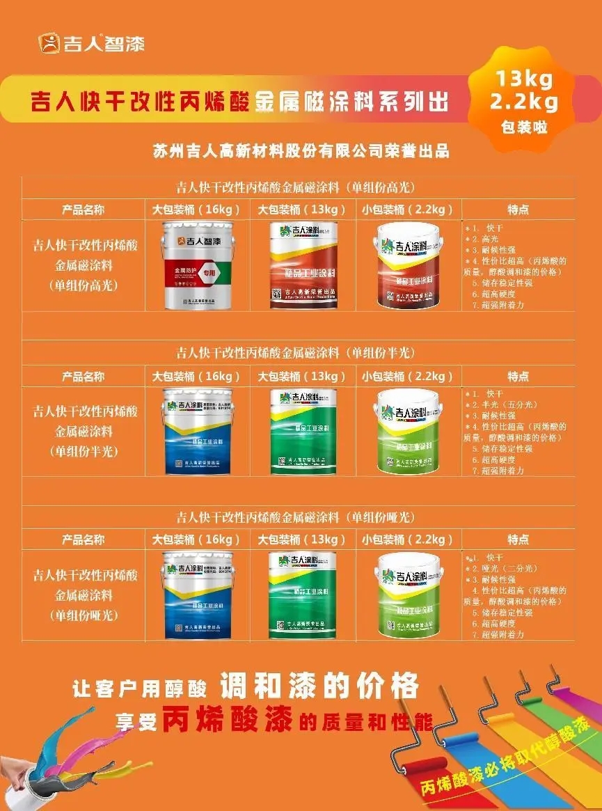 針對這個問題,蘇州吉人高新材料股份有限公司(以下簡稱“吉人智漆”)則根據(jù)市場的需求,投入了大量技術(shù)、人才和資金成本,于原版丙烯酸漆的基礎(chǔ)上刻苦研發(fā);在保證原有質(zhì)量和性能不變的前提下,改進原有的生產(chǎn)配方、生產(chǎn)秩序,巧妙降低丙烯酸漆的生產(chǎn)成本,終于研究出了丙烯酸漆的進階版——改性丙烯酸漆。