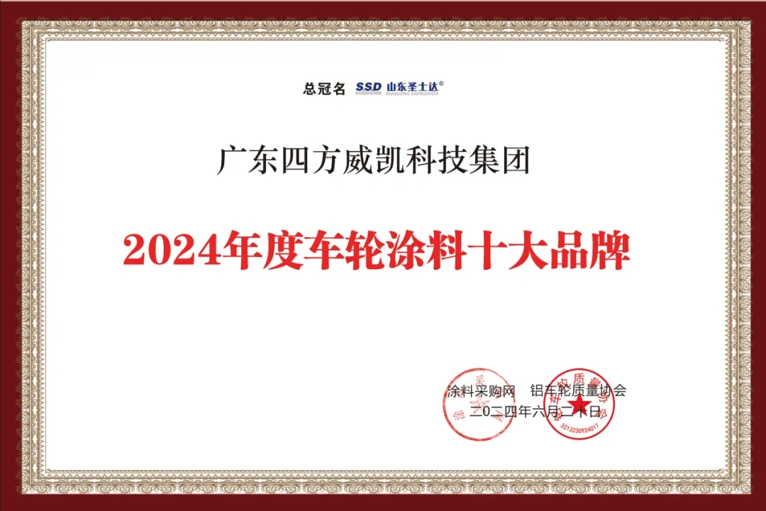 四方威凱負責人表示,很榮幸獲得“2024年車輪涂料十大品牌”這一殊榮,感謝所有支持四方威凱的戰略合作伙伴、廣大客戶以及社會各界,這是對四方威凱涂料在輪轂行業中領先地位的充分肯定。