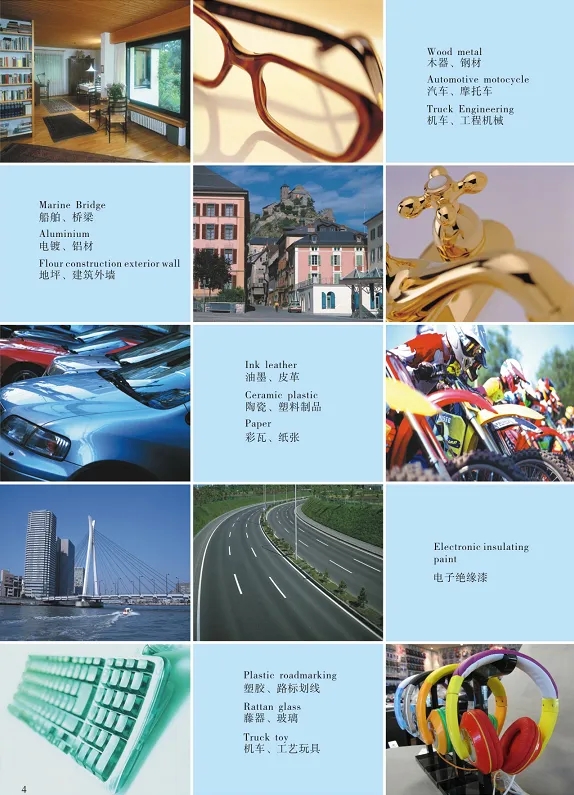 丙烯酸樹脂:丙烯酸樹脂分為三大類(熱塑性丙烯酸樹脂、羥基丙烯酸樹脂、熱固性丙烯酸樹脂)。可以用作自干漆、聚氨酯漆、烤漆、硝基漆。廣泛用于玩具涂料、3C涂料、電子絕緣涂料、鋼結(jié)構(gòu)、汽車修補(bǔ)、地坪、各種金屬烤漆、水性玻璃漆等等。其性價(jià)比高,性能優(yōu)越。