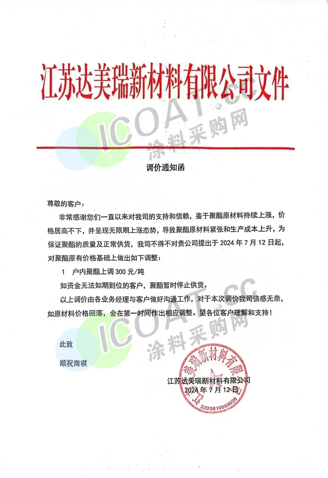 DIC:7月1日起,對PS產品及苯乙烯類產品提價。涉及GPPS、HIPS等,上漲20日元/kg(約合人民幣923元/噸);對顏料產品,無機顏料(鉍系顏料燒成顏料)、部分HPP顏料、鋁系顏料、酞菁顏料及加工顏料等漲價5-15%(部分有例外產品)。