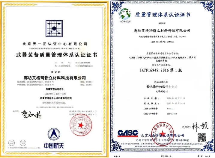 艾格瑪新立的粉末涂料產品,除“不折不扣”地滿足客戶的功能性需求外,其良好的穩定性和完美的呈現效果更為突出,被廣泛應用于重型機械、卷材、汽車、IT、電力、新能源、家具、交通設施、輸油(氣、水)管道等諸多涂裝領域。并在西氣東輸工程、南海海底輸氣工程、南水北調工程、首都國際機場、大興國際機場、北京地鐵、天眼工程等眾多國家級重大工程項目中得到應用,獲得了良好的評價。