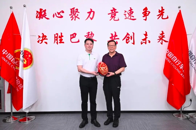 三棵樹高級副總裁林德殿向中國國家自行車隊教練及運動員交付頭盔