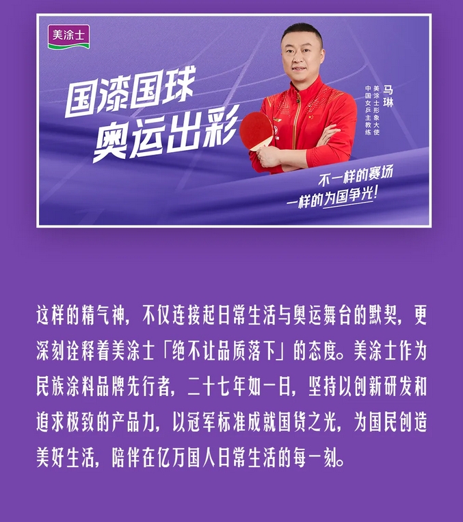 重磅 I 國漆國球新動態,中國女乒教練馬琳任美涂士形象大