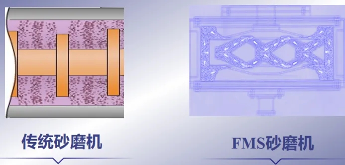 相較于市面上的其他研磨機,FMS砂磨機的優勢在于能夠使用最小直徑的砂磨珠(0.1mm),使砂磨珠的砂磨效率最大化,適用于不同黏度的產品,長時間穩定運行而不會導致物料溫度過度升高,并能夠將能量更多的轉換用于砂磨。這使得FMS砂磨機能夠生產出均勻的微小細度的產品,避免出現砂磨的死區問題(只有攪拌器邊緣處的砂磨珠能夠有效起到砂磨作用,以及砂磨筒內充滿大量砂磨珠導致砂磨效率低下),使得起砂磨作用的區域更加隨機,提升了產品質量。