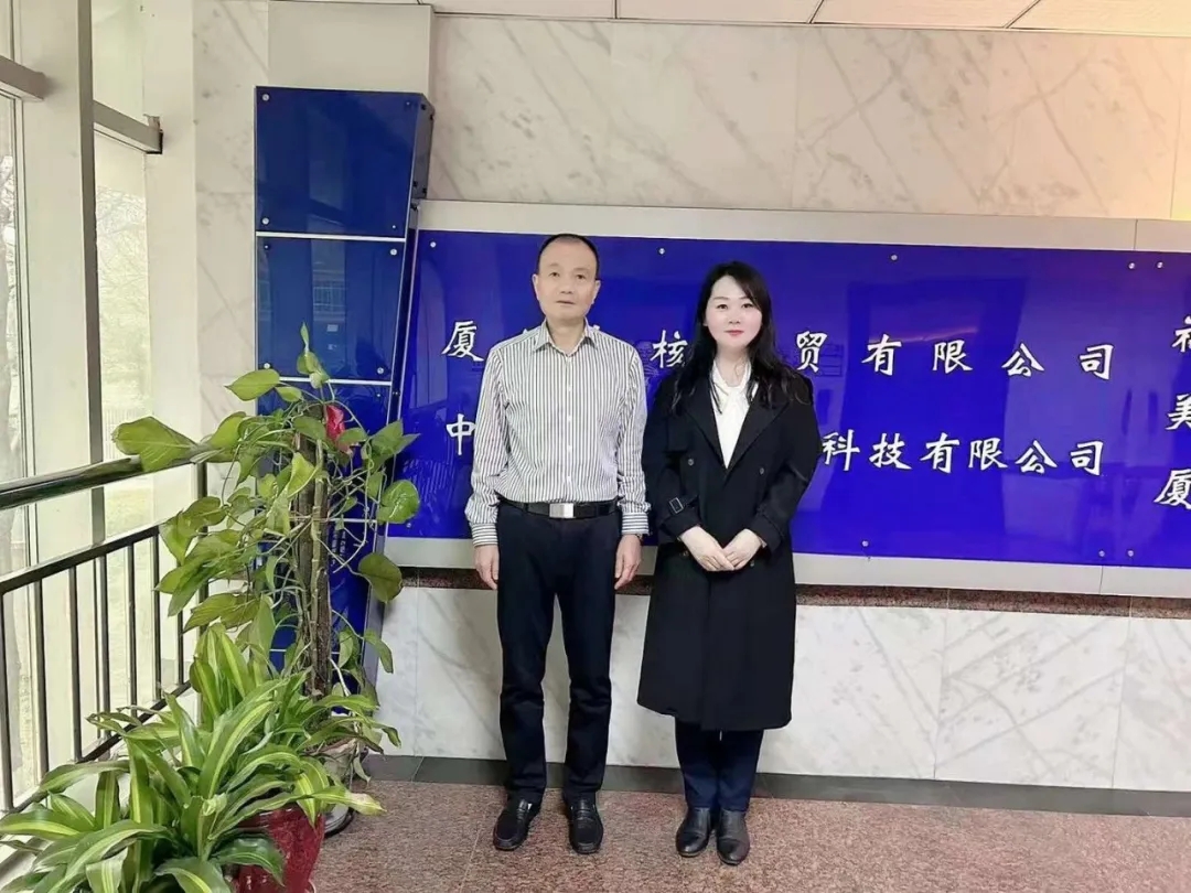 涂料采購網江雪(右)到訪廈門中核商貿并與孔總(左)合影