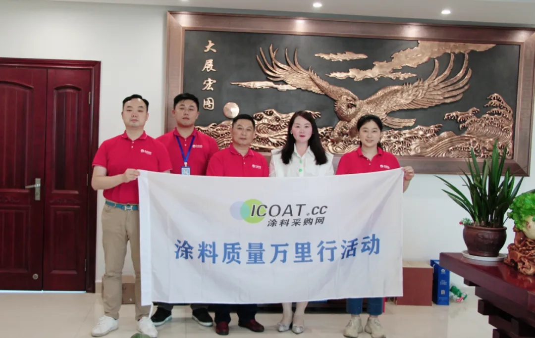 涂料采購(gòu)網(wǎng)市場(chǎng)總監(jiān)江雪(右二)探訪華泰涂料