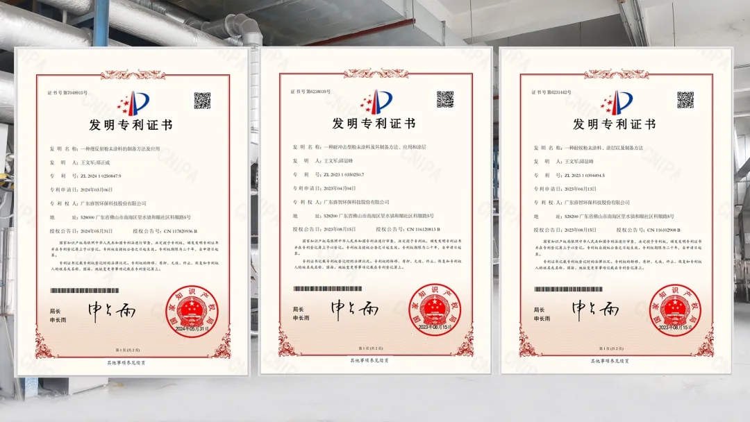 經過長期不懈的技術創新和積累,睿智專注于預涂卷材的新型發展方向,以市場需求為導向,研發出了一系列基礎型產品,包括增厚型、超薄高流平型及功能型涂料。在此基礎上,公司進一步拓展,成功開發出重防腐高耐溶劑型、超耐候型、高/漫反射型、隔熱型、高導熱型、抗污易清潔型、抗菌防霉型等數十項具有鮮明特色的產品,實現了卷材核心技術的重大突破,并榮獲多項核心發明專利,如“隔熱型彩鋼瓦卷材粉末涂料的制備及應用”、“高導熱型粉末涂料及制備方法”、“耐沖擊型粉末涂料及其制備方法、應用和涂層”、“聚酯樹脂自清潔粉末涂料及其制備方法”以及“漫反射粉末涂料的制備方法及應用”等。不僅有效解決了超快速固化等關鍵技術難題,還在原有溶劑型涂料的性能上實現了全面升級。