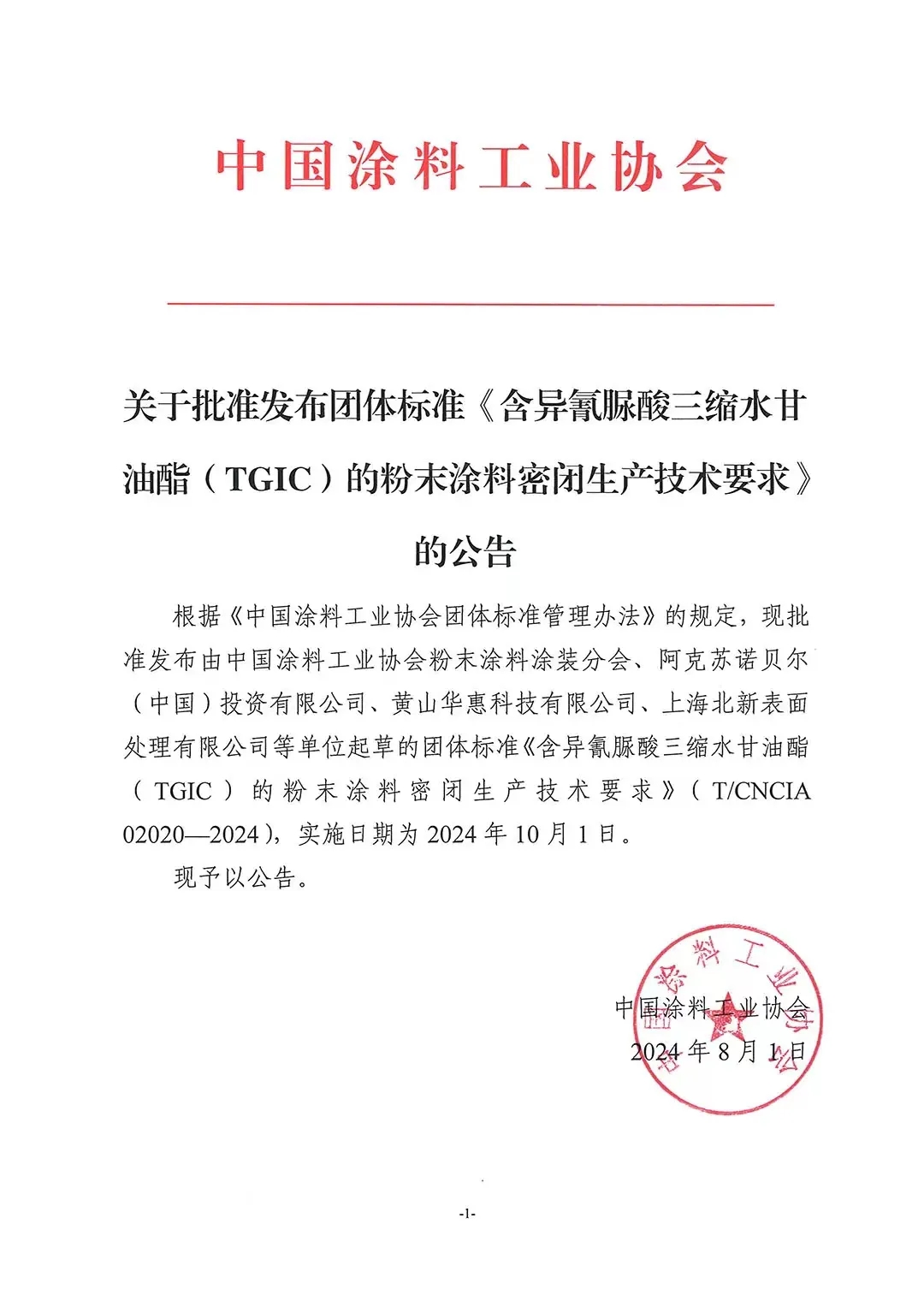 2)2024年1月3日,中國涂料工業(yè)協(xié)會發(fā)布了《關(guān)于發(fā)布2023年(第二批)中國涂料工業(yè)協(xié)會團體標準立項計劃項目的通知》,《含異氰脲酸三縮水甘油酯(TGIC)的粉末涂料密閉生產(chǎn)工藝要求》項目編號為9號;