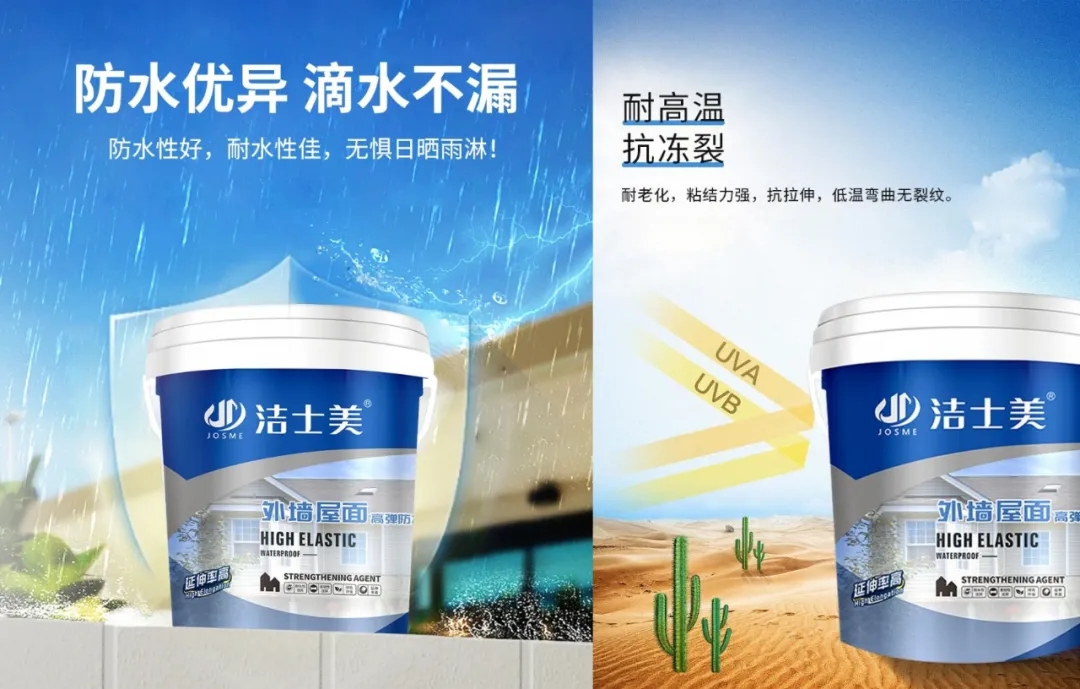 其中,潔士美外墻屋面高彈防水產品具有優異的防水性、耐水性,能有效隔絕水分的滲透,使客戶從容應對雨季帶來的潮濕、滲水、霉變等問題;該產品還擁有卓越的柔韌性、延展性,它能夠隨著基面的收縮、變形自如伸縮,保持涂膜的完整與緊密,從而盡可能地規避因基層變動而導致的滲漏問題,為人們筑起一道動態的防護網,使其擁有更加干爽舒適的體驗。此外,它還操作簡易,開桶即用。這能夠使客戶告別繁瑣的施工流程,迅速完成防水作業。如今,它的出色表現力贏得了市場的青睞,已廣泛應用于居民住宅、酒店、寫字樓等多個場景。