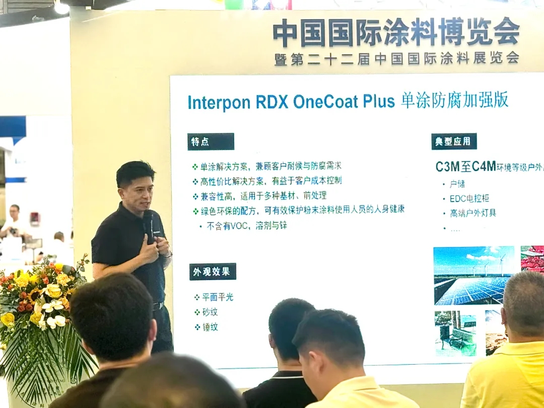 在2024年涂博會中,阿克蘇諾貝爾粉末涂料事業部再次攜兩大品牌Interpon®和Resicoat®亮相,全方位展示了產品在各細分領域中的創新應用,例如:建材、汽車與交通運輸、通用工業及消費品、功能性粉末涂料等。