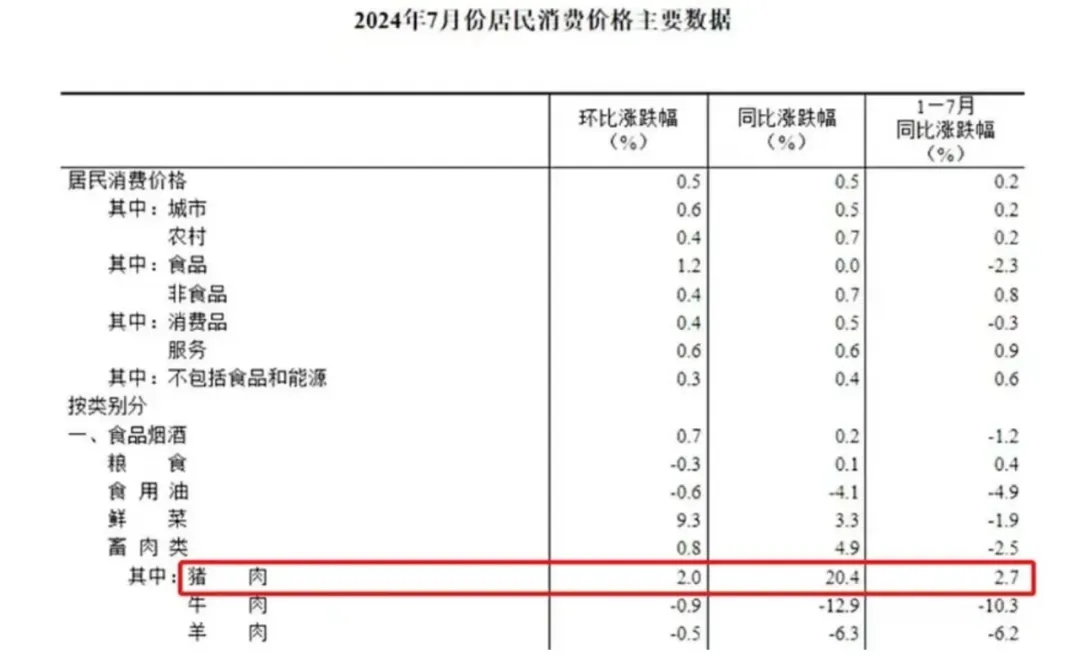實際上,這種趨勢已經持續了一段時期。7月CPI同比漲了0.5%。一句話來評價就是“溫和上漲超預期”。但仔細觀察就會發現,7月的物價上漲主要是豬肉立了大功,同比大漲20.4%,帶動了食品價格的上漲。在豬肉打頭陣的帶領下,近期消費品市場掀起一波漲勢。