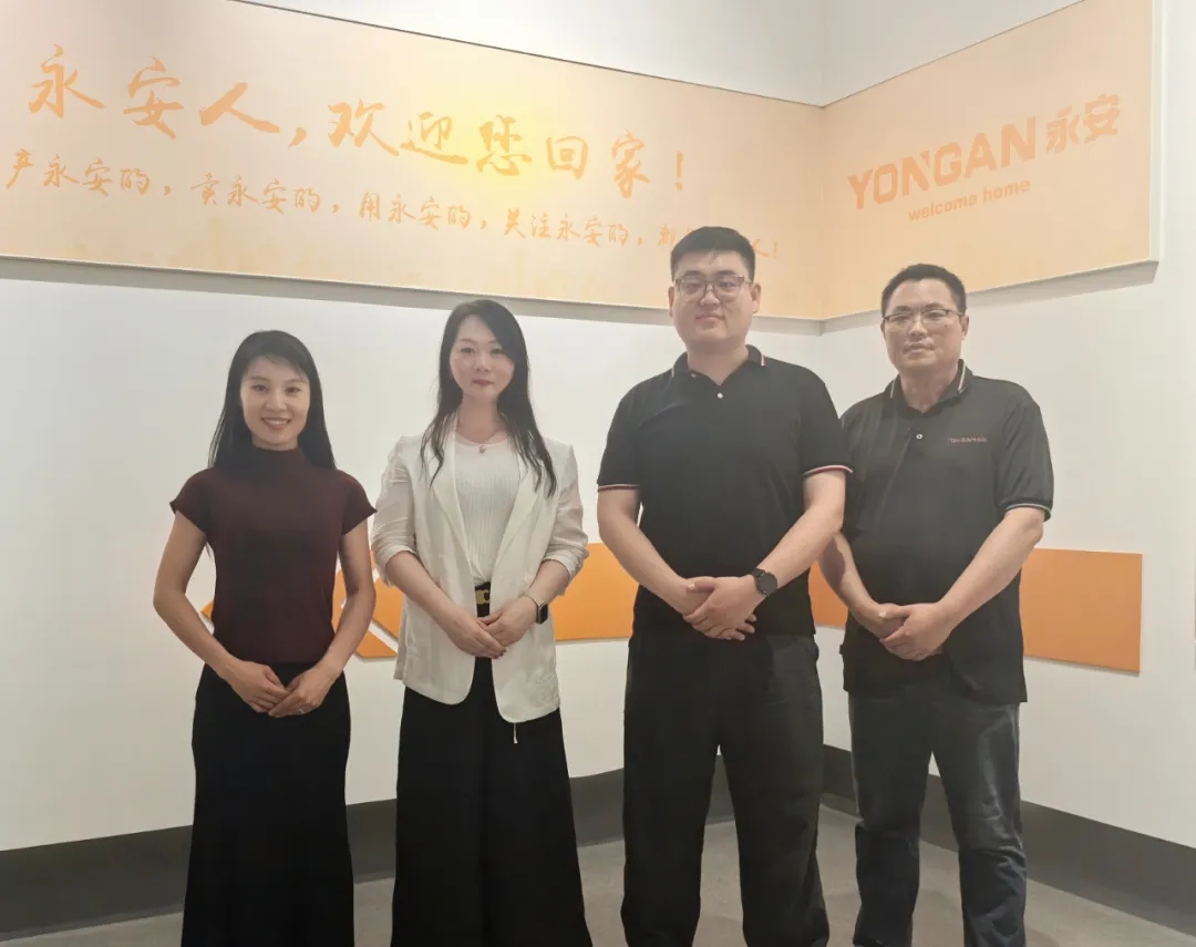 涂料采購網(wǎng)江雪(左二)與永安水漆總經(jīng)理趙肖黎(右二)等工作人員合影