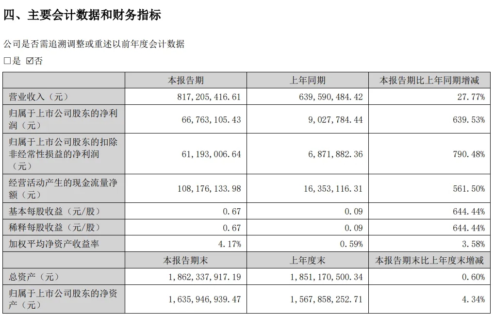 近日,雙樂股份(或稱公司)發(fā)布2024年半年度報(bào)告,報(bào)告期內(nèi),公司實(shí)現(xiàn)營業(yè)收入8.17億元,同比增長27.77%;歸屬于上市公司股東的凈利潤6676.31萬元,同比增長639.53%;基本每股收益0.67元。公司擬向全體股東每10股派發(fā)現(xiàn)金紅利3元(含稅)。