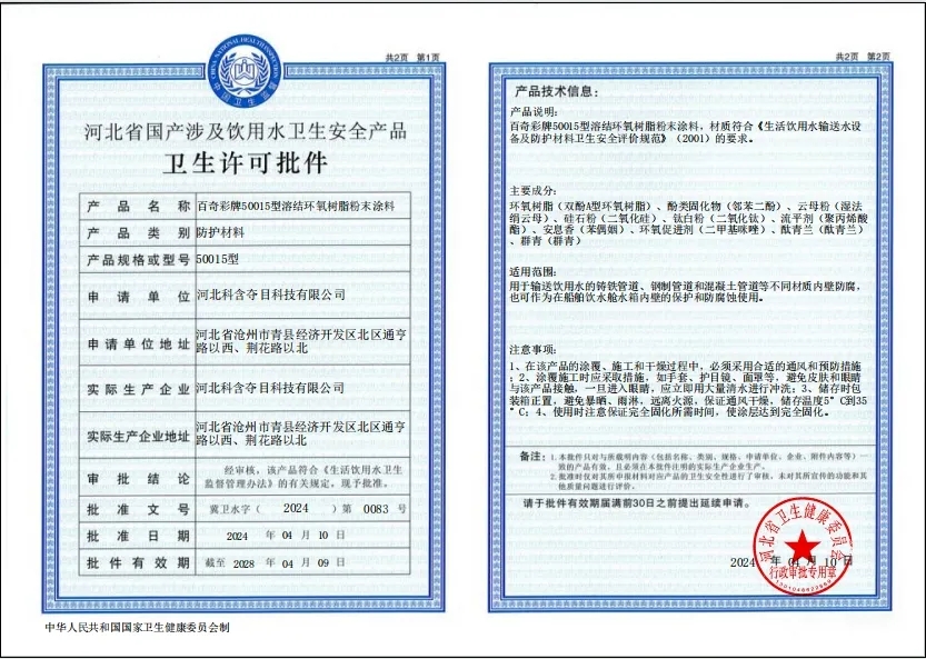 河北科含奪目科技有限公司(以下簡稱“科含奪目”),作為專注粉末涂料領(lǐng)域的企業(yè),一直致力于為輸水管道提供高效、環(huán)保的防腐解決方案。企業(yè)憑借深厚的行業(yè)積淀和強大的科研實力,成功研發(fā)出百奇彩50015型溶劑環(huán)氧樹脂粉末等一系列具有自主知識產(chǎn)權(quán)的防腐產(chǎn)品。這些產(chǎn)品以其卓越的性能和廣泛的應(yīng)用領(lǐng)域,贏得了市場的廣泛認可和好評。