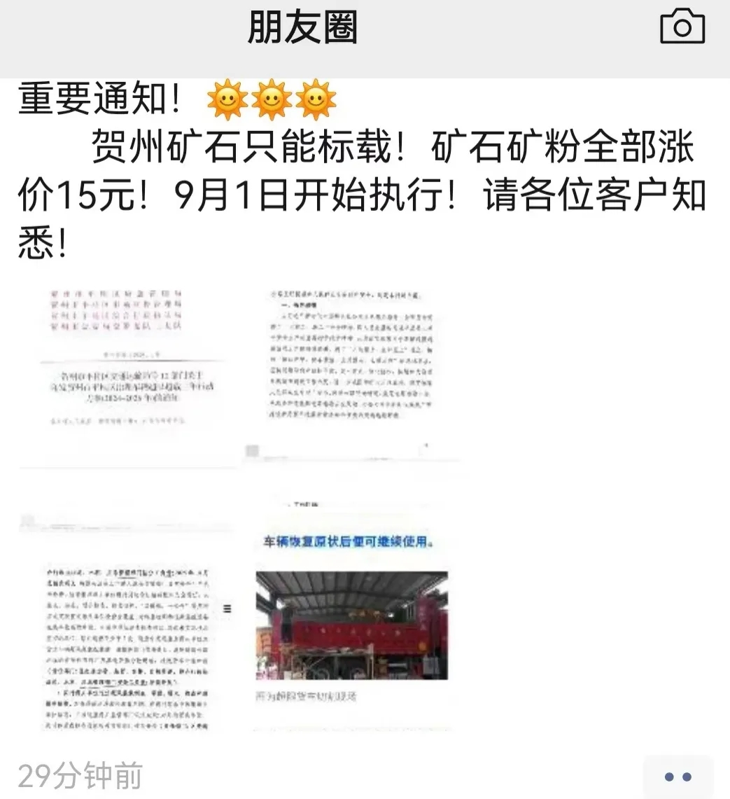 另外,今年年中賀州市交通運(yùn)輸局發(fā)布了《賀州市交通運(yùn)輸局等14部門關(guān)于印發(fā)賀州市治理車輛超限超載三年行動(dòng)方案(2024-2026年)的通知》,當(dāng)?shù)氐V石廠表示,可能會(huì)引發(fā)礦石、礦粉漲價(jià)。