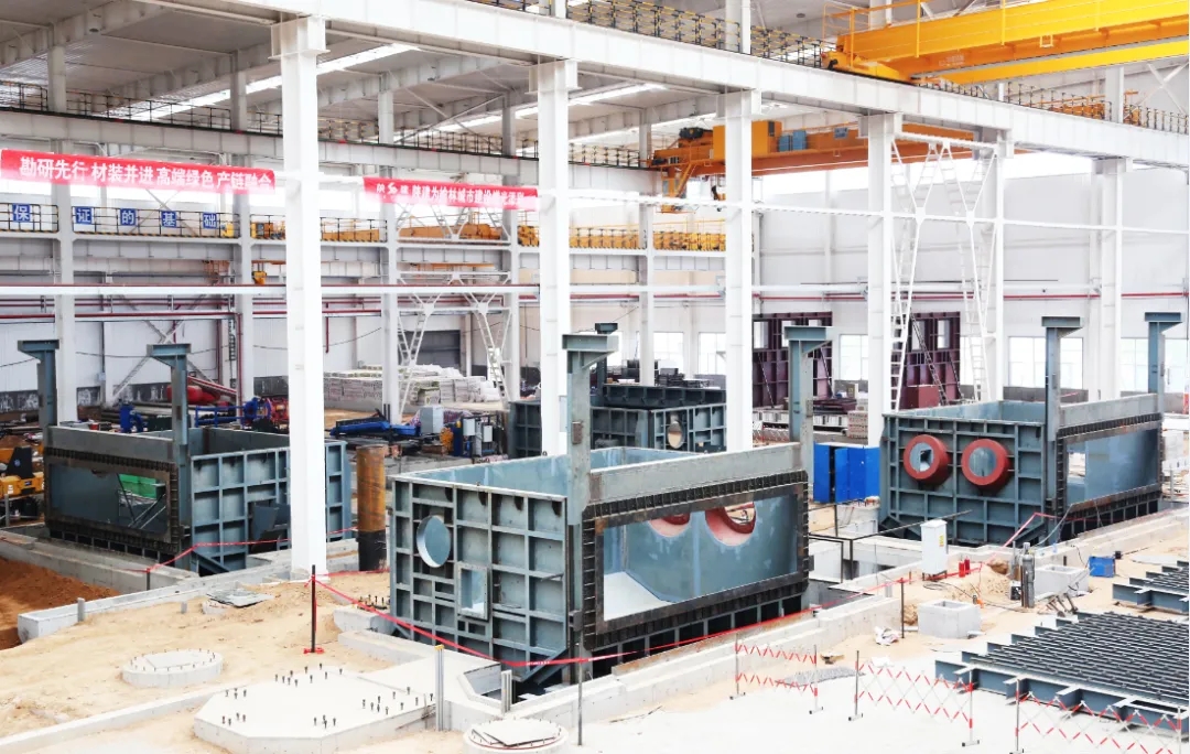 榆林新材料集團合金分公司設備部副主任吳瑞釗介紹,35噸熔保爐作為第一批進場的主體設備,承擔著扁鑄錠產品的生產,截至目前,該設備鋼結構框架已就位,拼裝焊接、筑爐等安裝工作正在有序進行。