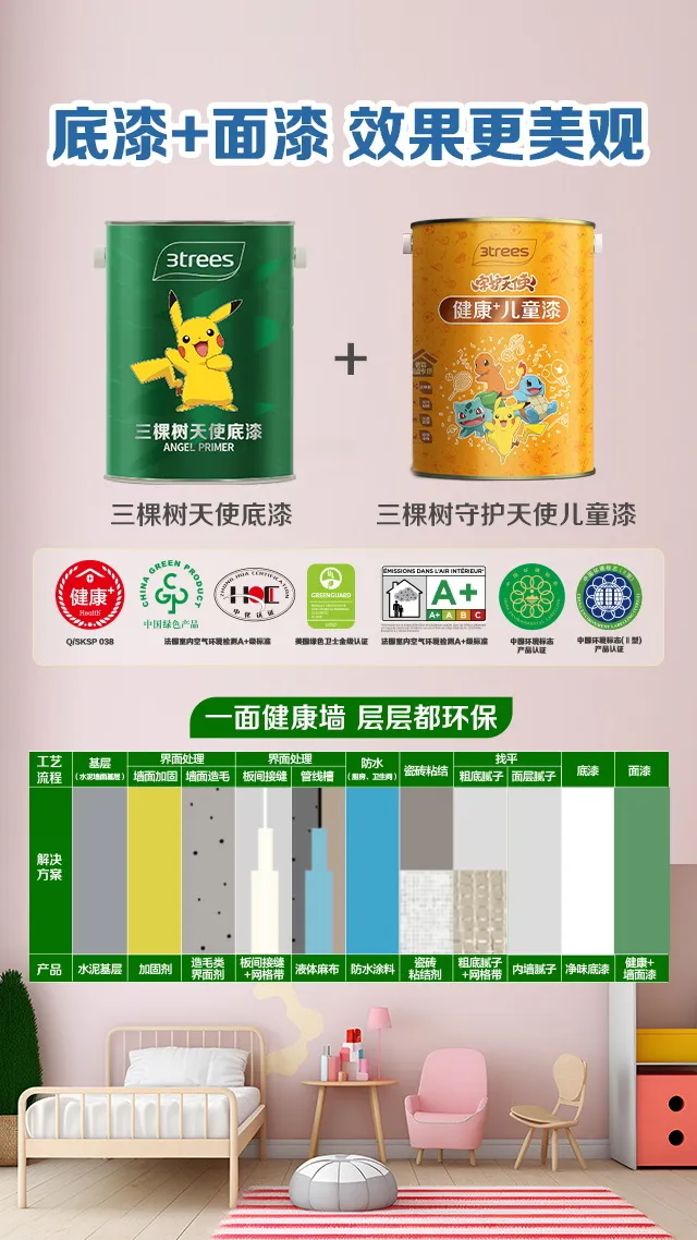 搭配三棵樹無添加色漿,打造絢麗“健康+”墻面