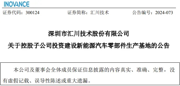 此外,匯川聯合動力還于2024年8月成立新能源汽車技術(蘇州)有限公司,該公司位于吳中太湖新城,注冊資本50000萬元。