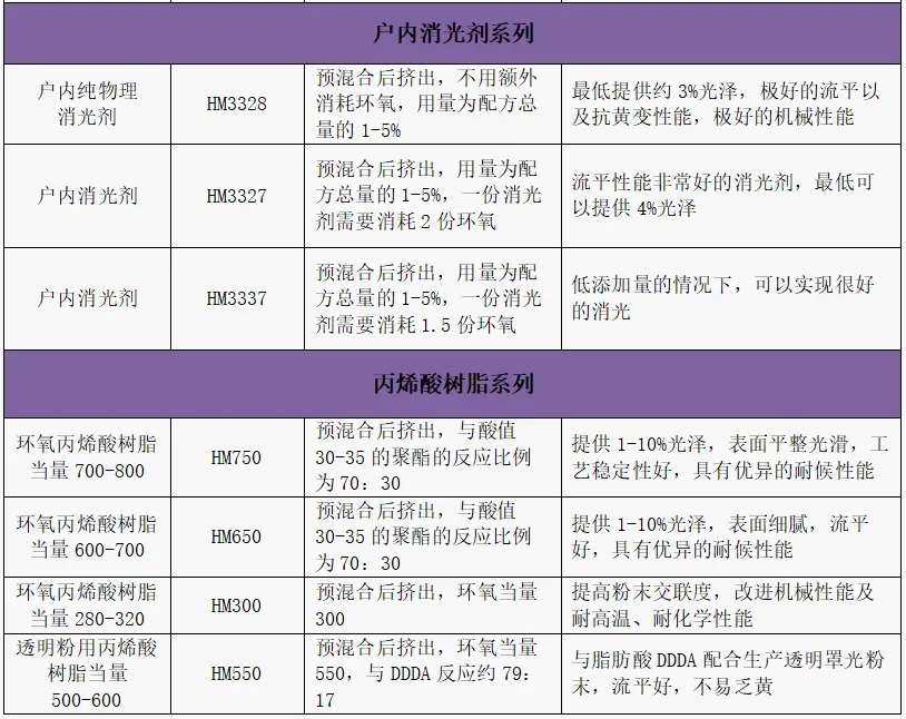 此外,消光劑產品具有流平性能優異、低煙、低光澤和適應性強等差異化優勢,最低提供約3%-4%光澤,消光效果與市面上常見的消光劑拉開了明顯差距;聚氨酯樹脂產品具有優異的附著力、抗黃變和耐溫、耐候等性能;環氧丙烯酸樹脂當量700-800和環氧丙烯酸樹脂當量600-700作為代表性產品,可提供1-10%光澤,表面平整細膩,工藝穩定性好,獲得了上下游客戶的一致好評。