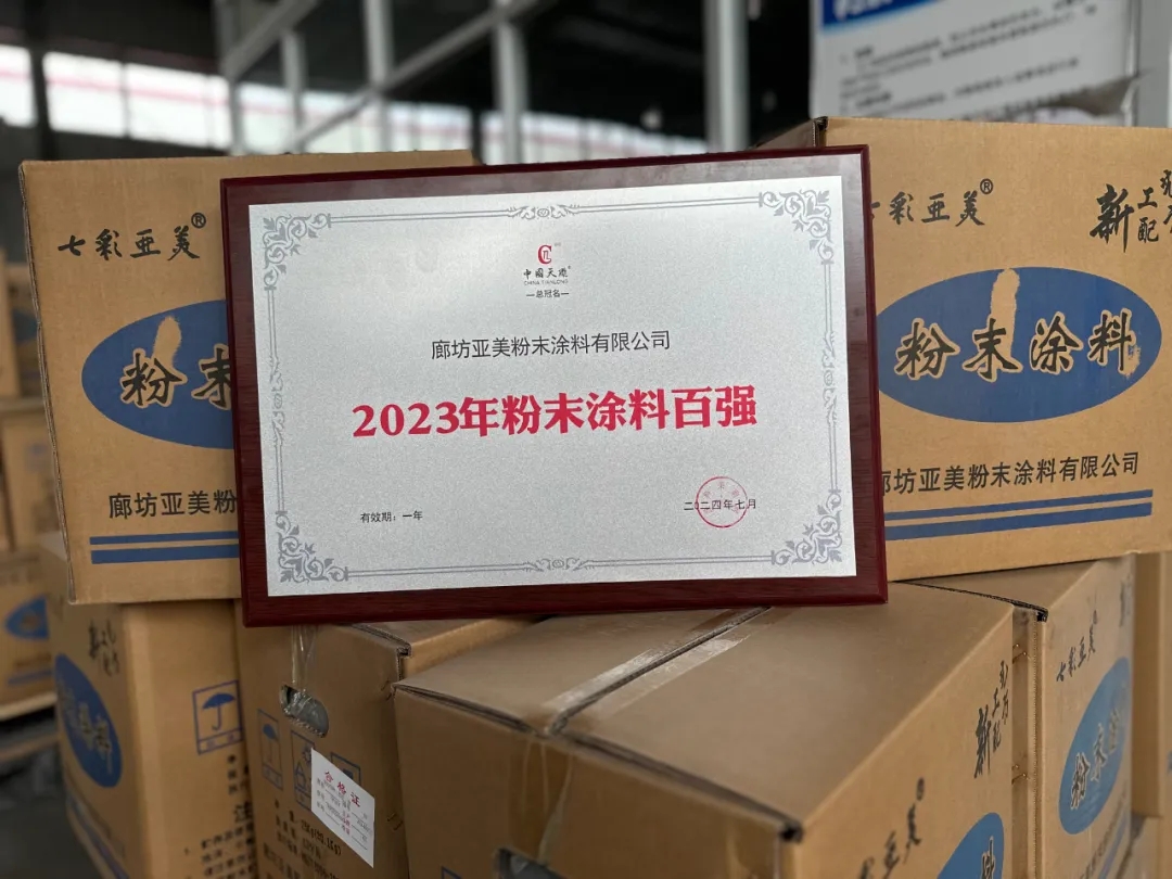 憑借著優異的質量和周到的服務,廊坊亞美的銷量在近年來穩步增加,并以4850噸的銷售量入圍了涂料行業頭部媒體——涂料采購網舉辦的《2023年粉末涂料百強》榮譽,口碑和美譽度極佳,不愧為行業頭部企業。