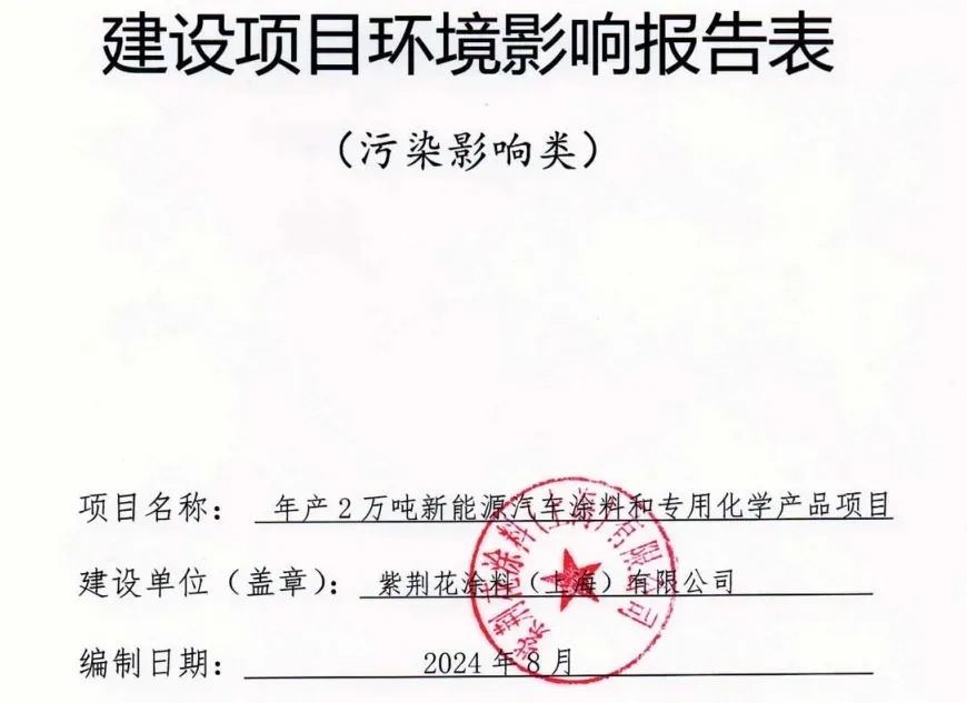 紫荊花涂料(上海)有限公司計劃總投資1835萬元新建年產2萬噸新能源汽車涂料和專用化學產品項目,項目建成后可實現(xiàn)年產值3億元,這是其首次建設新能源汽車涂料生產線。