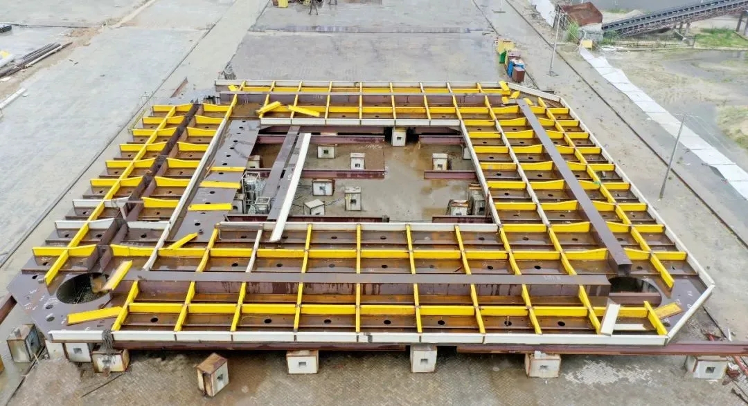 該項目位于廣東省陽江市南側海域,沉樁定位架總高度達59.56米,長寬均為35米。是一款專為鋼管樁沉樁施工量身打造的施工設備,以其精準定位能力,成為樁基施工準確性與安全性的關鍵。它能夠依據精密的設計參數,將樁體絲毫不差地安置于預定位置,為整個海上風電場的穩固基礎奠定了堅實的基礎。