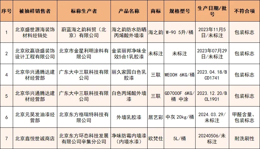 據(jù)涂料采購(gòu)網(wǎng)不完全統(tǒng)計(jì),2024年以來(lái),全國(guó)多個(gè)省市地區(qū)曝光了不合格涂料企業(yè)名單,有些甚至在質(zhì)量月仍頂風(fēng)作案,無(wú)視規(guī)章制度。這些不合格項(xiàng)包括包裝、凈含量、耐水耐火性能、對(duì)比率、VOC含量、甲醛含量、耐洗刷性等多個(gè)指標(biāo),帶來(lái)的影響也是極為惡劣的。