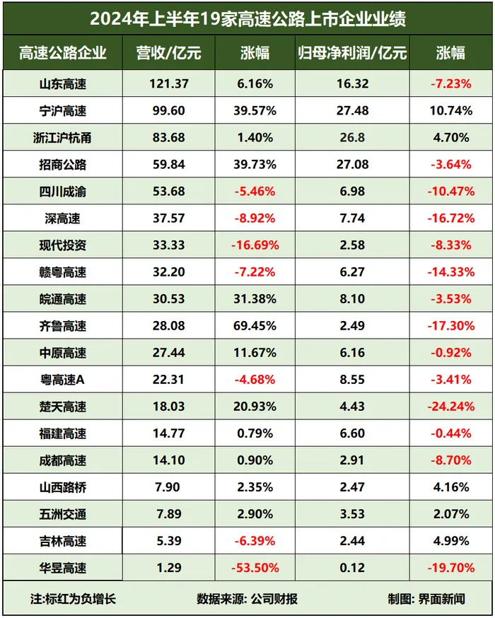 今年上半年,19家營收主要為公路通行費的上市企業和去年同期相比,大部分上半年營收普遍上漲,但凈利潤卻出現下滑。