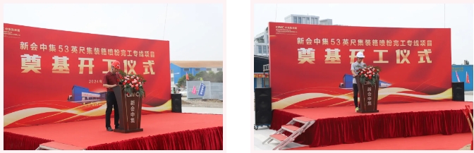 奠基儀式上,產線建設項目總包單位和監理單位的代表分別上臺發言。總包單位負責人表示,此次參與全球首條集裝箱噴粉專線的建設,深感榮幸,將嚴格遵循項目的高標準、高要求,確保施工質量和進度,助力項目如期完工并順利投產。監理單位負責人也鄭重承諾,將以專業的監理服務,確保項目安全、環保、優質進行,全力支持新會中集實現綠色智能化制造的目標。