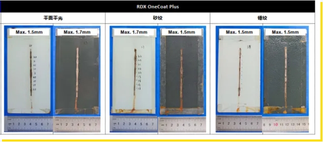 將Interpon RDX One Coat Plus單涂防腐加強版與另兩款產品Interpon 600和Interpon F2410做平行中性鹽霧測試,前者的性能更勝一籌。