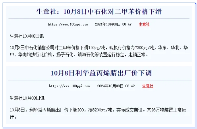 10月8日,中石化、利華益等龍頭企業宣布產品噸價下滑百元左右,更是坐實了旺季降價的情況。